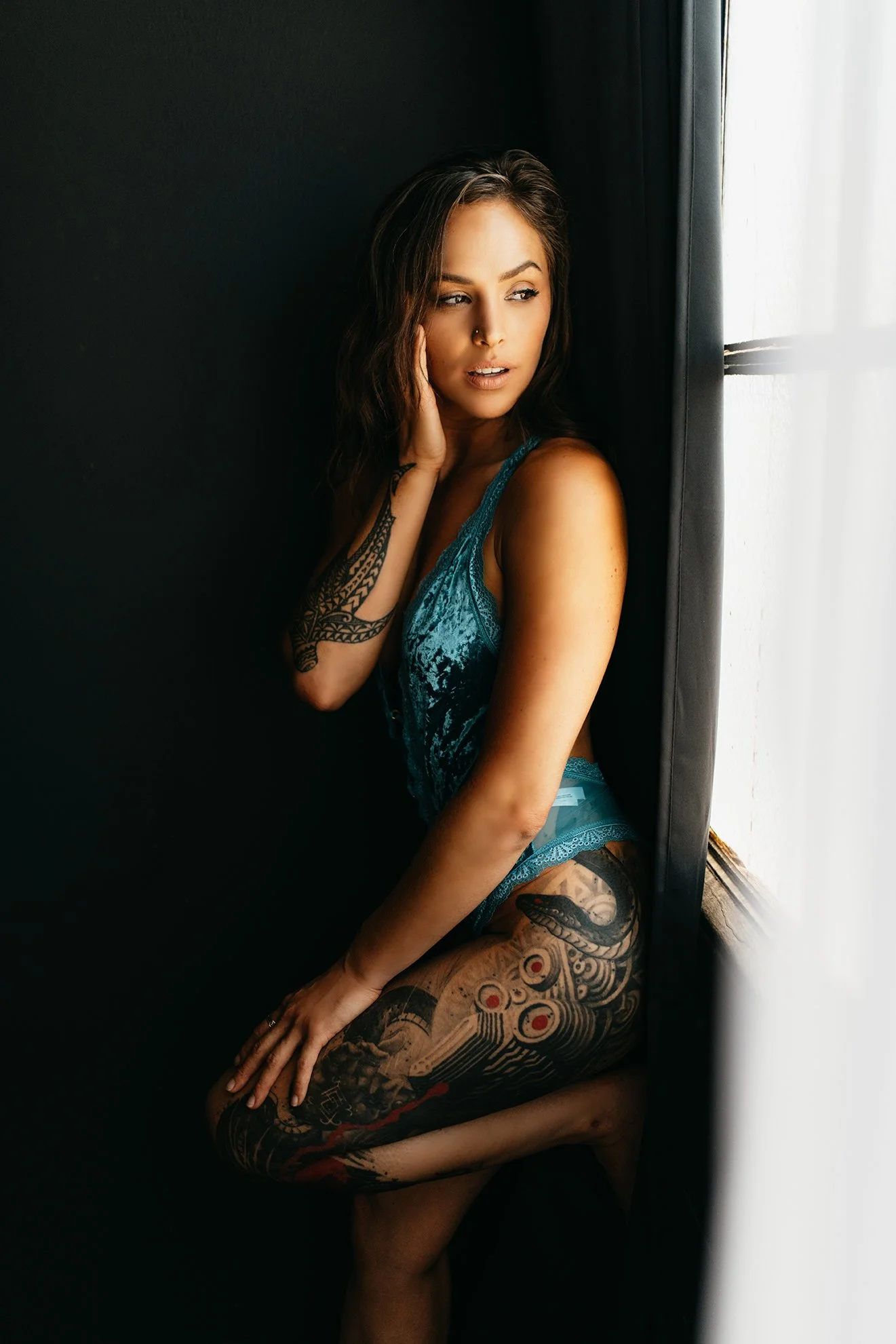 Boudoir Sessions are $1300 and include a 2 hour shoot(some of that is changing chatting and laughing), and 70-80 edited images.