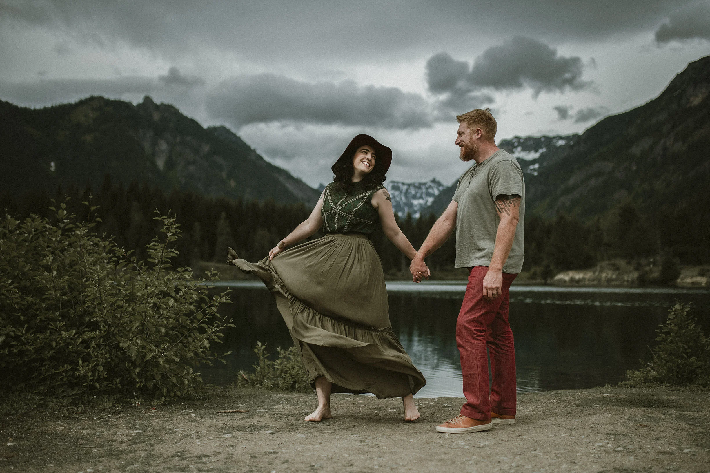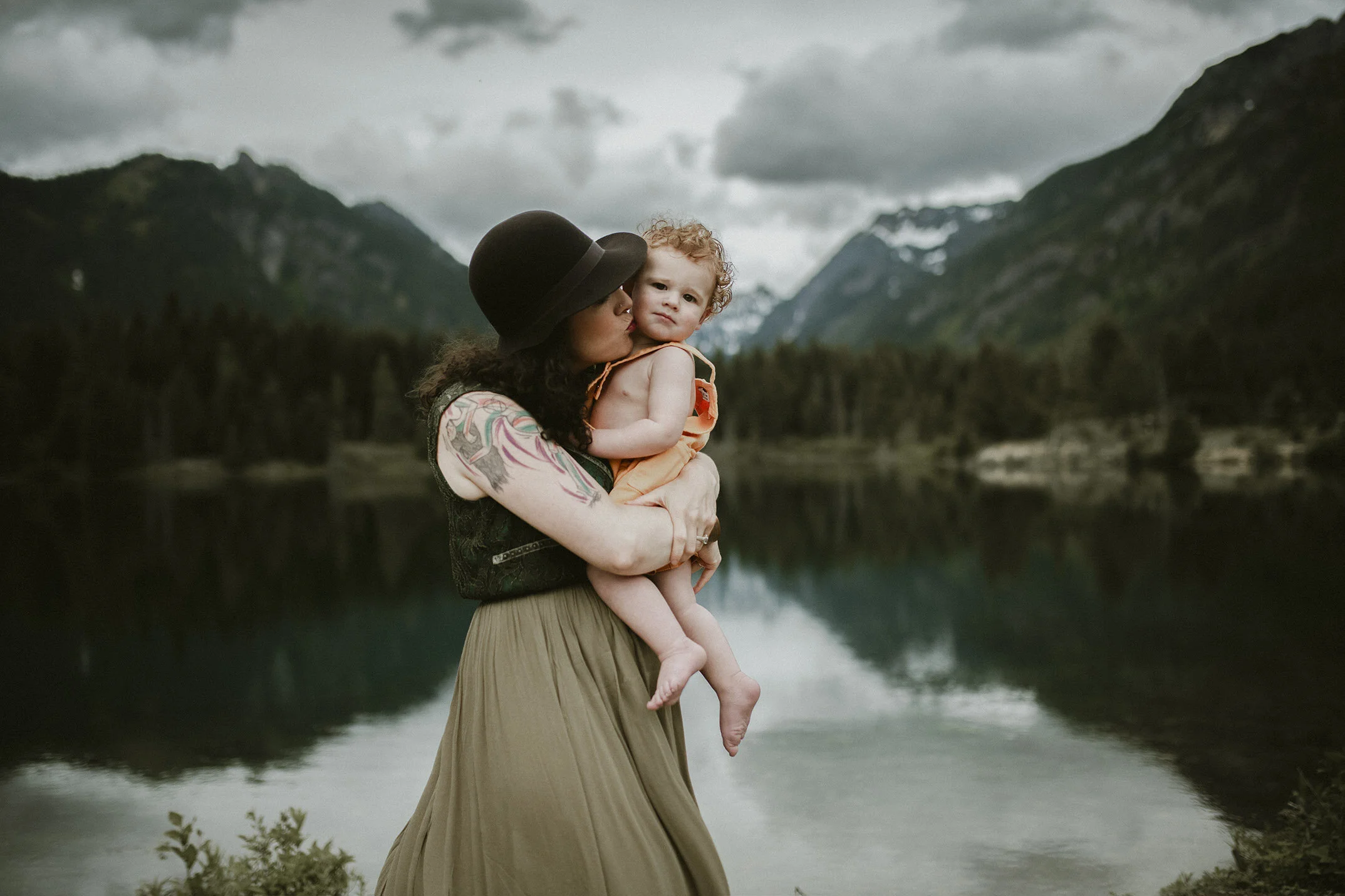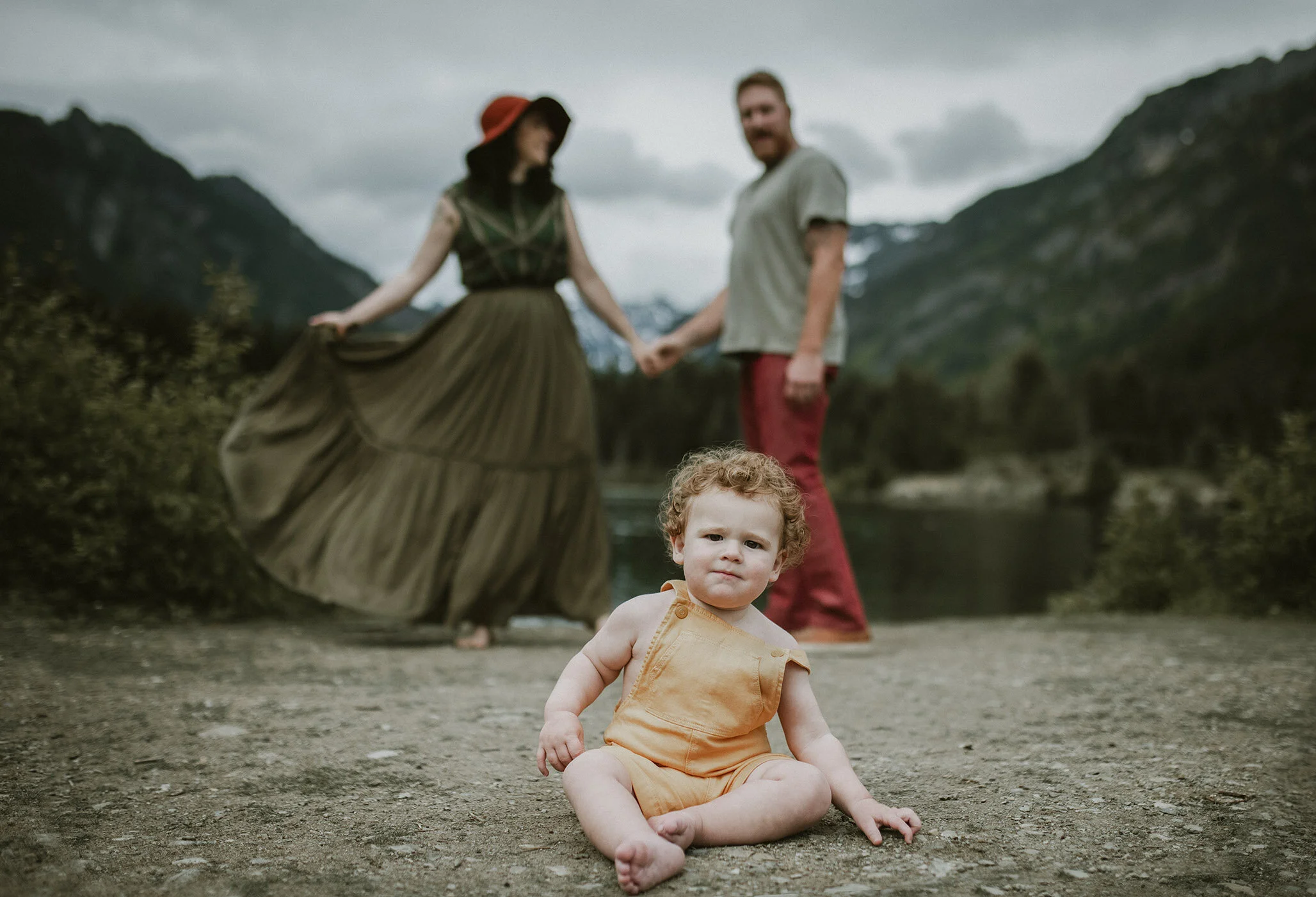 I love an adventure family session. This one was special to me since I have been photographing Cody and Tara since their engagement shoot. I did their Orcas Island wedding photos. Tara and I did a little sexy fun shoot to surprise Cody on their wedding day with. I came over to photograph August for his newborn session. All leading up to this beautiful PNW famly session at Gold Creek Pond up at Snoqualmie Pass. Heaven!