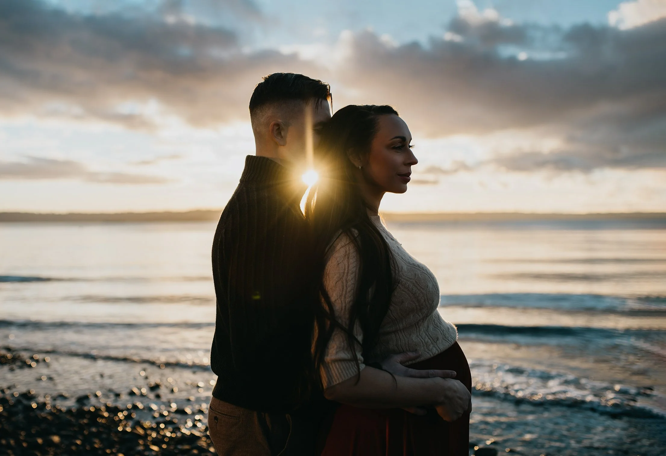 We did the maternity session at Lincoln Park in West Seattle, starting in the forest and ending down at the beach for sunset. We shot and chatted for about two hours. I LOVE DUKE the dog. I mean I love them all.