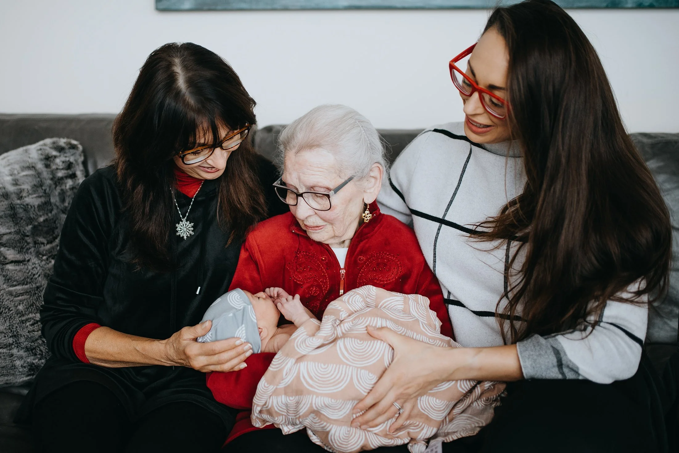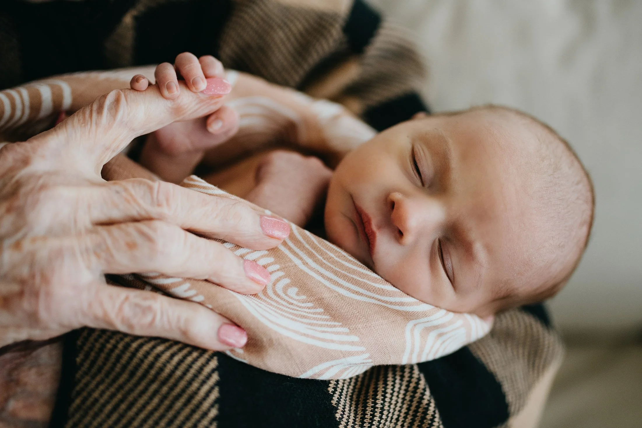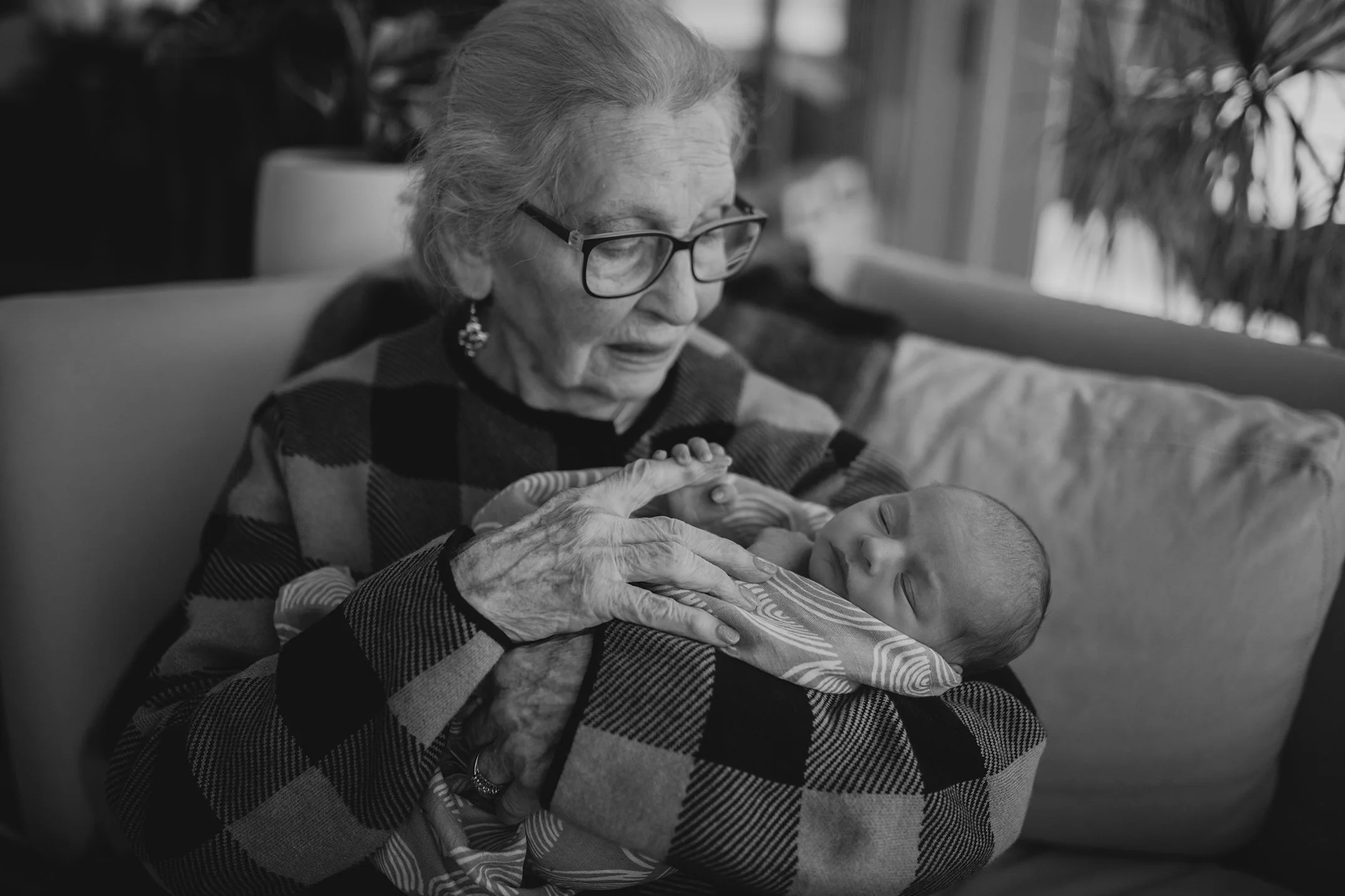The newborn session took place in the comfort of their home, and a whole gang of family was there! Including grandma and great grandma. I felt so incredibly blessed to get all four generations together. Great grandma is 93, and a what lovely human!