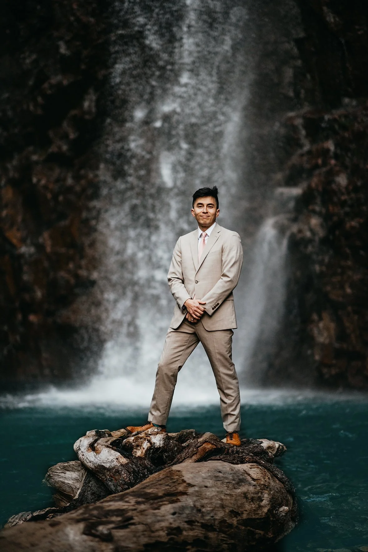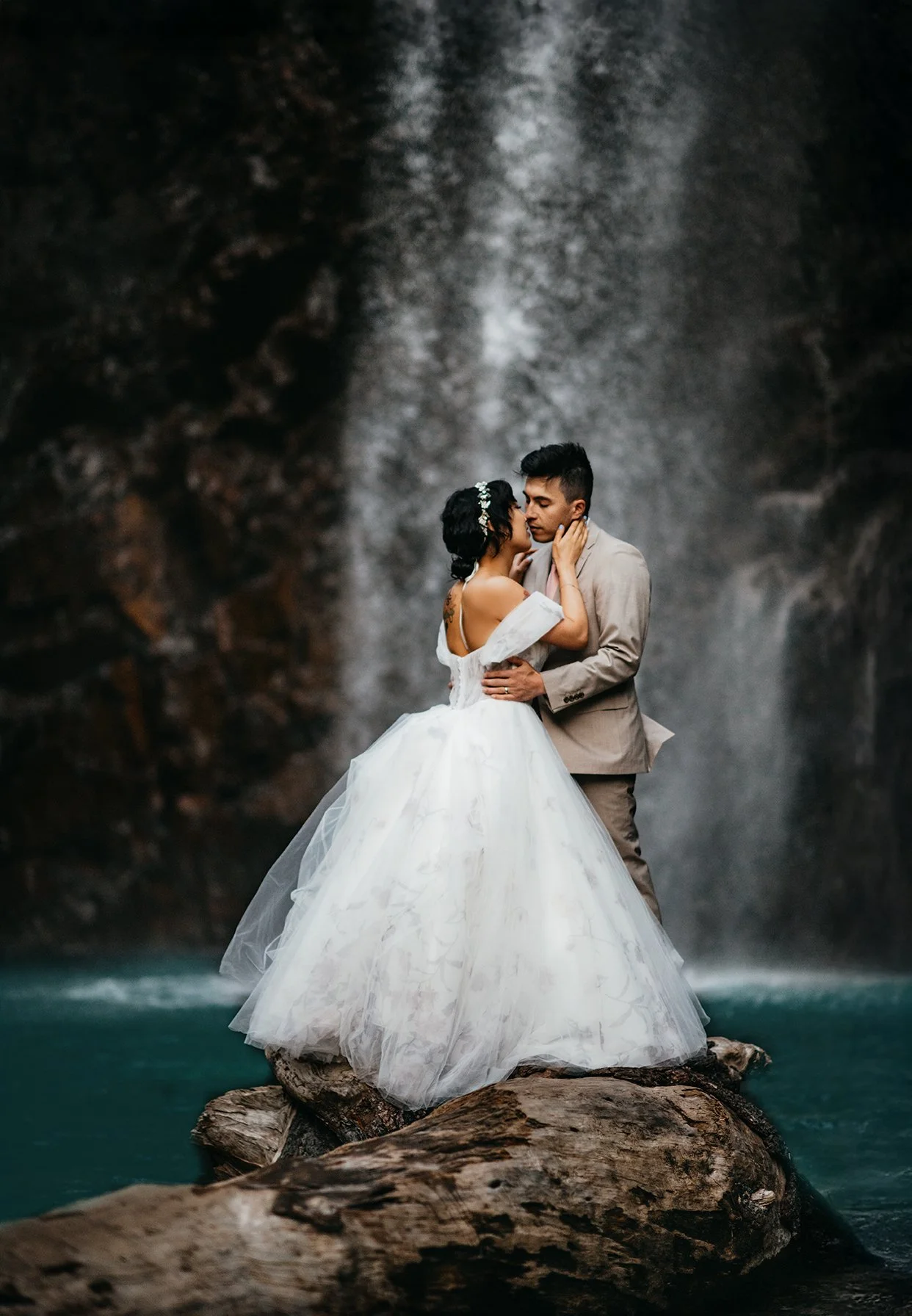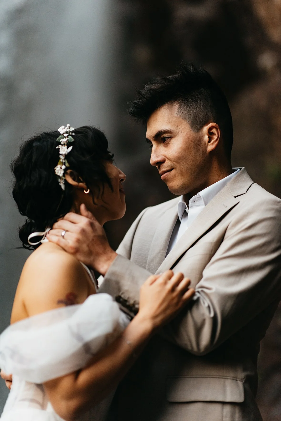 This beautiful newlywed team just got married a month before this shoot on Whidbey Island(see previous blog) It was one of the best weddings I have ever shot! These two are a dream to work with, so much fun. The waterfall brought a light chilly spray that helped keep them awake:) They wanted some photographs of them outside of the wedding venue, so we choose an epic spot, took a small hike, and had some fun.