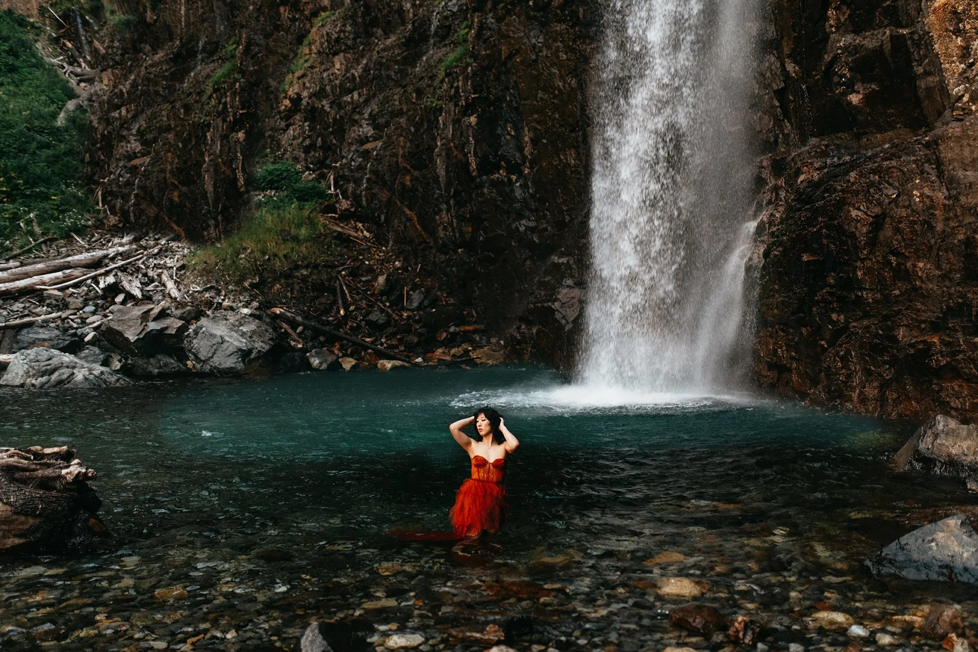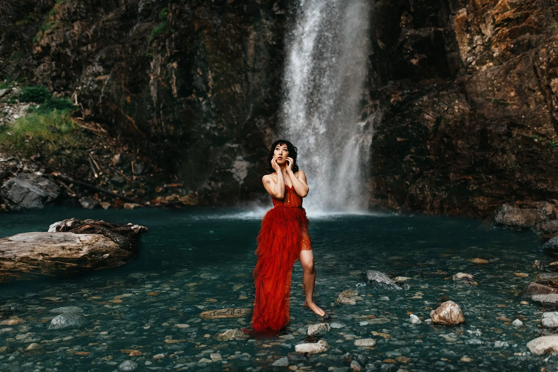 This beautiful goddess wanted to get in the water for this photoshoot, and we knew that wasn’t happening in the wedding dress:) I brought one from my personal collection for her to take a dip in. Brave beautiful soul, that mountain water is cold. The energy of water is such a powerful thing.