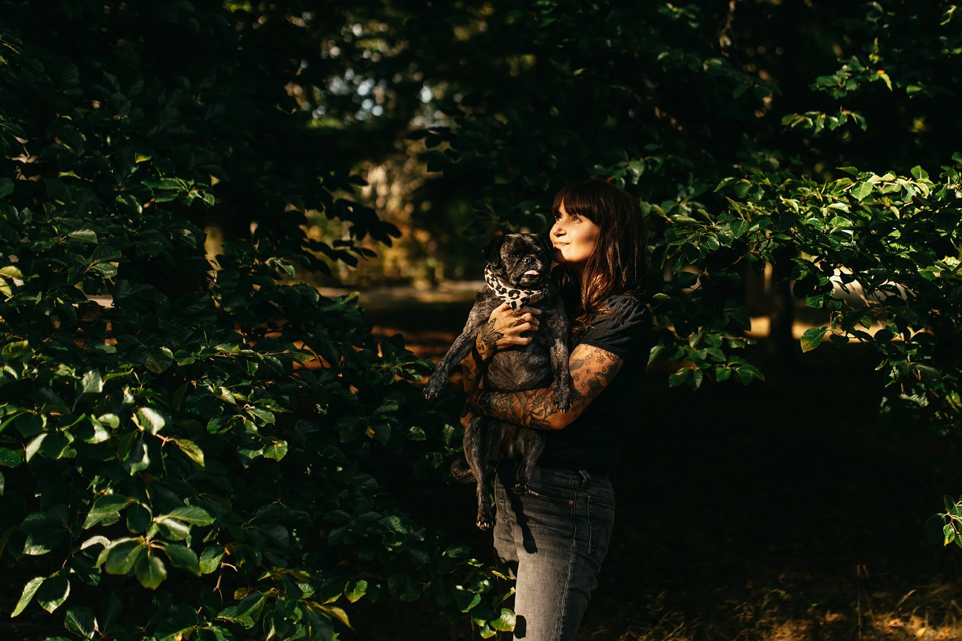 Here I am sitting in my favorite park, just waiting for you to book with me! Second photo, me trying to look cool, HA! And this is Ezme my little best friend in the world.