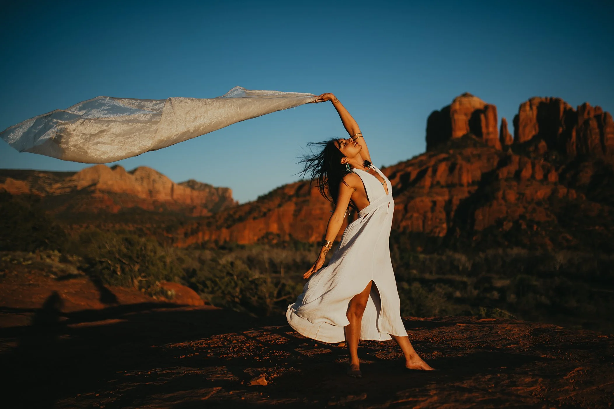 I apologize this post is so long! As I dug in here I really didn’t want to leave anyone out. When shooting in Sedona, I love hats, scarves, flowy dresses, even jean shorts and a tank, black looks good, Ivory or light brown looks amazing as you see, earth tones are great! Bring more than one option, let’s play!