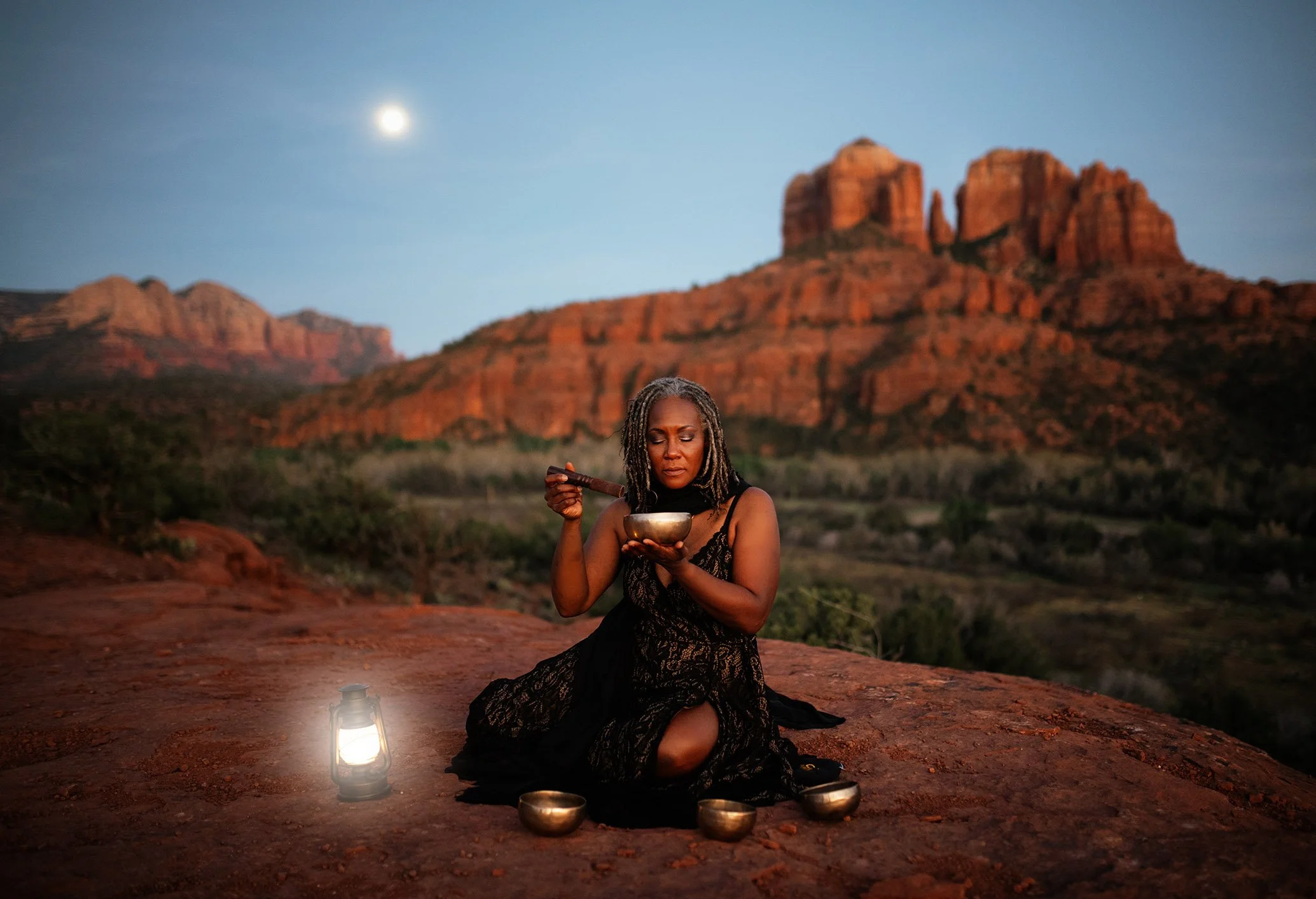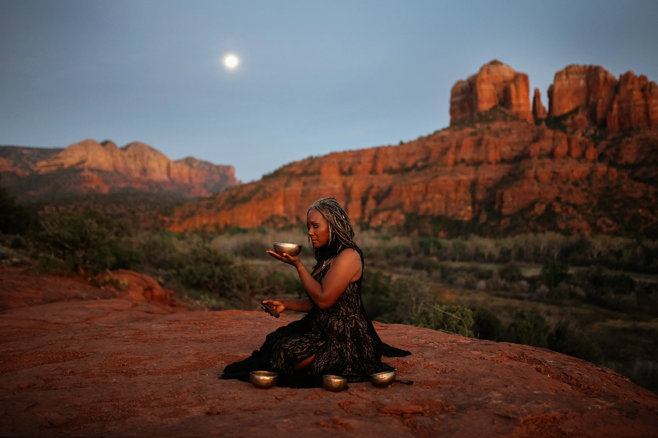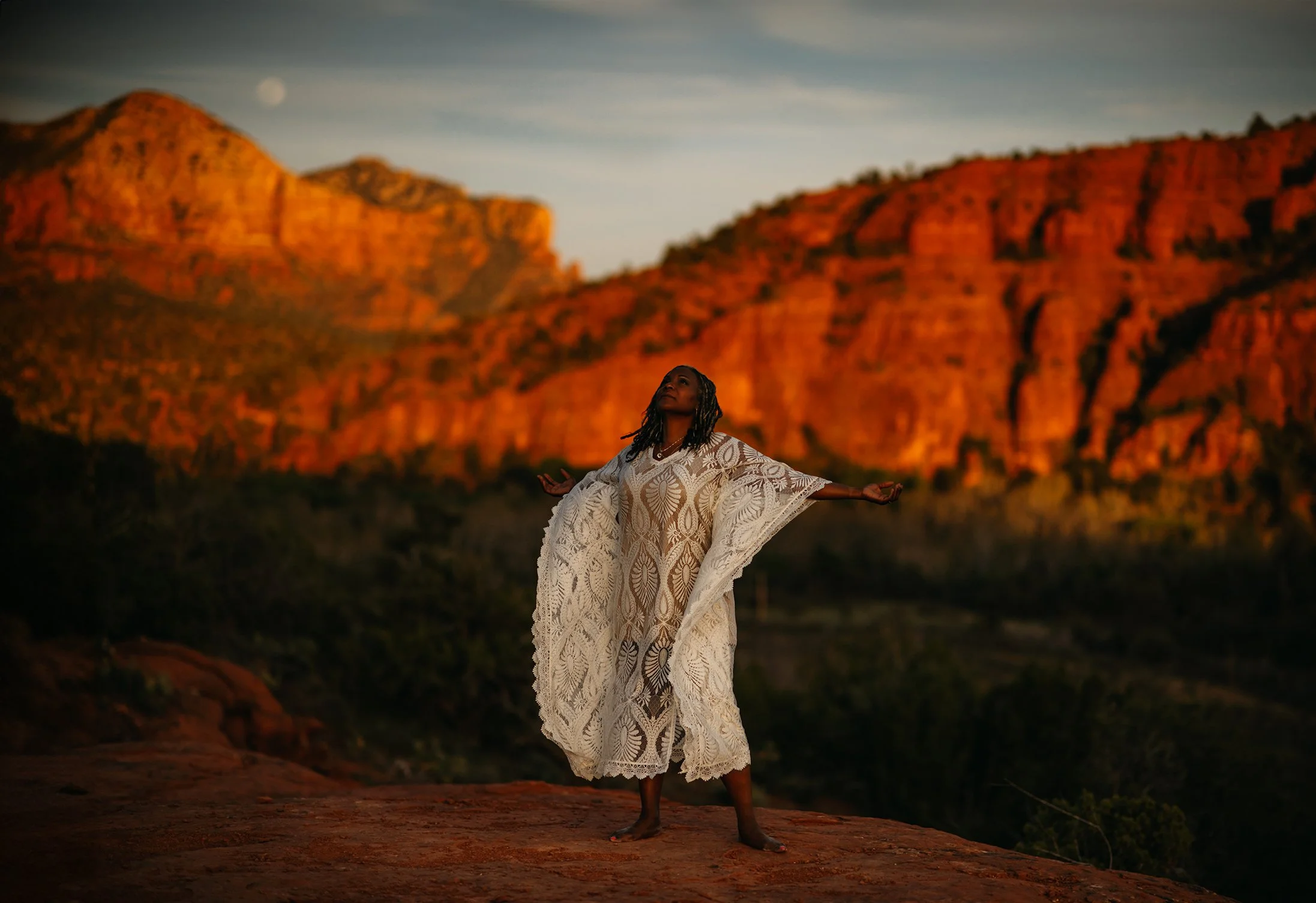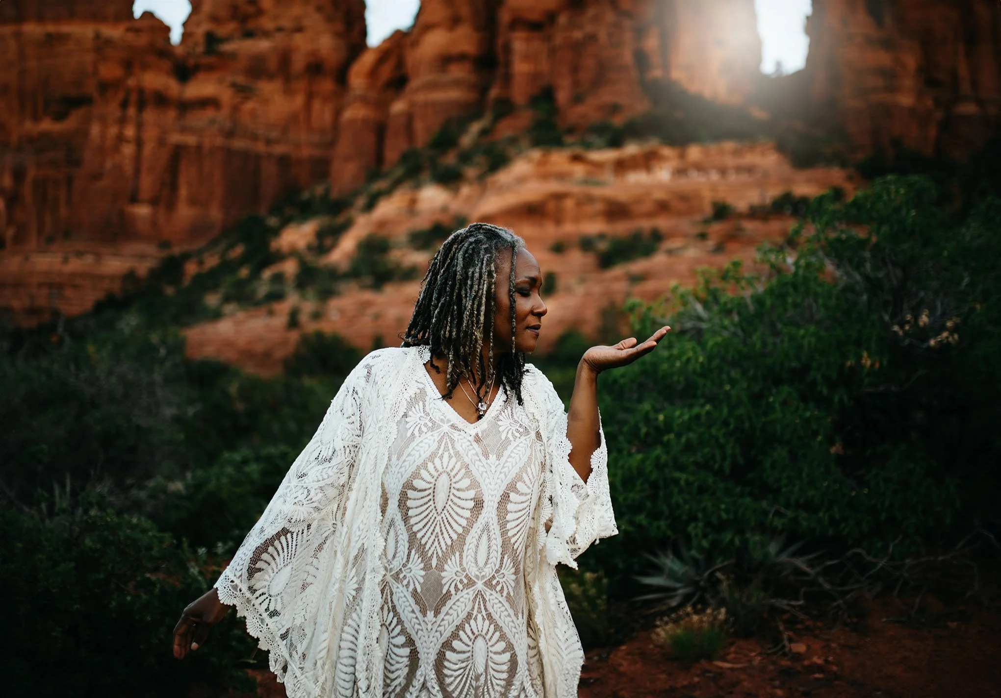 I love reliving these moments. This stunning woman traveled from Washington State to Sedona, Arizona to see the beautiful landscape and do a few photo sessions with me. I know that having beautiful images of yourself can be so healing- and photographing healers can be equally as healing for me. Angela is an intuitive guide, healer, and certified sound therapist. Angela’s approach is rooted in loving compassion to help you release physical, spiritual, or energetic blocks from your life. So you can live a more authentic expression of who you are and find joy in just being yourself. She wanted a photo shoot to embrace where she is on her journey, as well as branding for her business.
