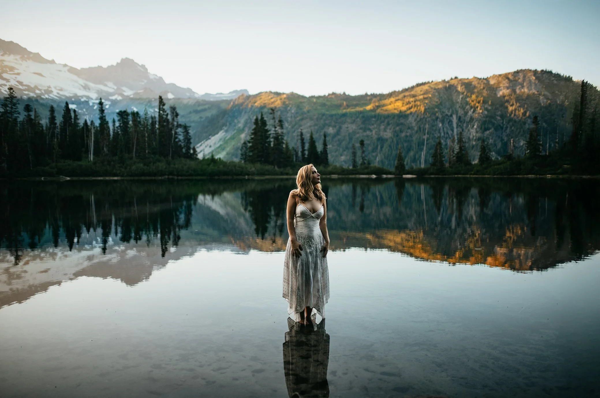 This lady and I set out on a friendship adventure, and I told her I wanted to check out Snow Lake. I would reccomend this location for a Senior photoshoot, or a women empowerment session, but maybe not a family session. There was nowhere to stand to get the water shot, but in the water- and it is allowed in this lake. The bank was tiny, and the mosquitos were many and hungry.