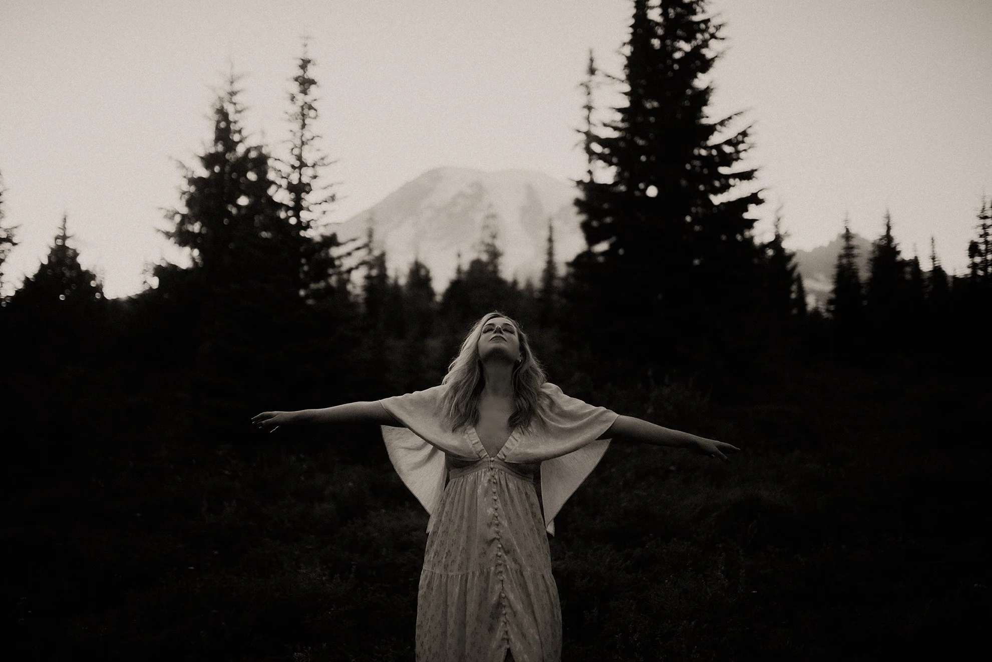 Mt. Tahoma whispers the stories of rivers, forests, and the women who stand in her light. - Seattle Women Empowerment Photographer